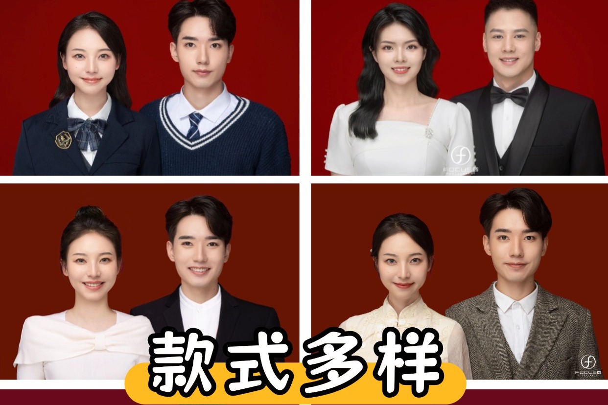提供小程序服装,服装可自备 如加拍照片提供花絮道具 提供双人淡妆,造型 打印一版 共4张2寸照片(裁切好)纸质版
